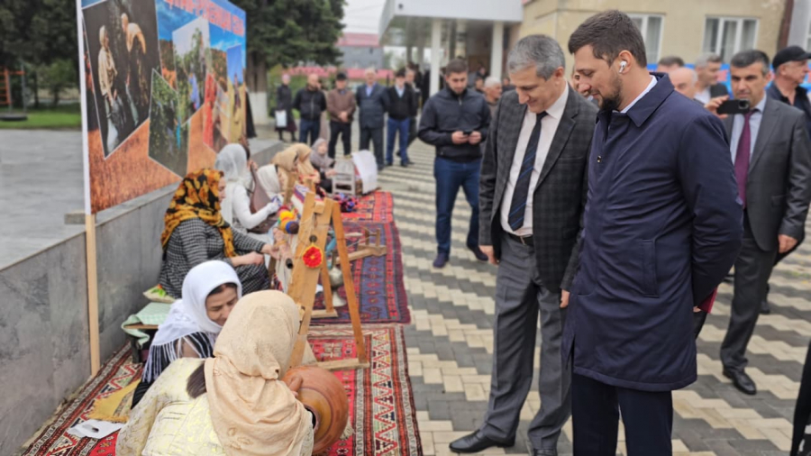 Временно исполняющий полномочия главы Магарамкентского района Нариман Эфендиев перед началом мероприятия обошёл площадки , где развернули выставки  изделий декоративно-прикладного искусства школ искусства района, выставку блюд лезгинской национальной кухни.